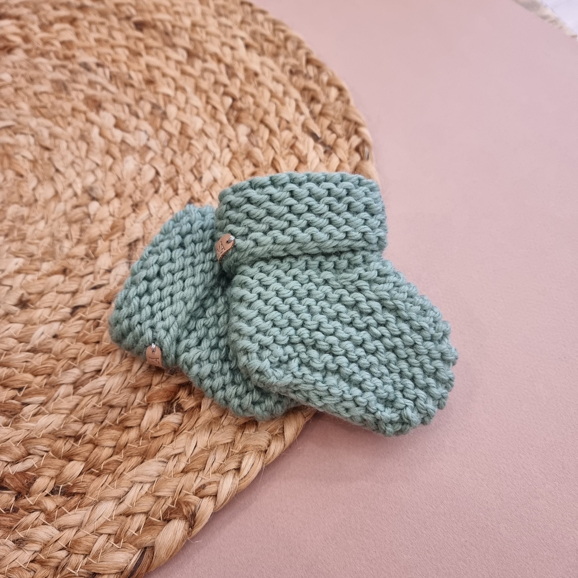 CHUBBY hand knitted booties - sage